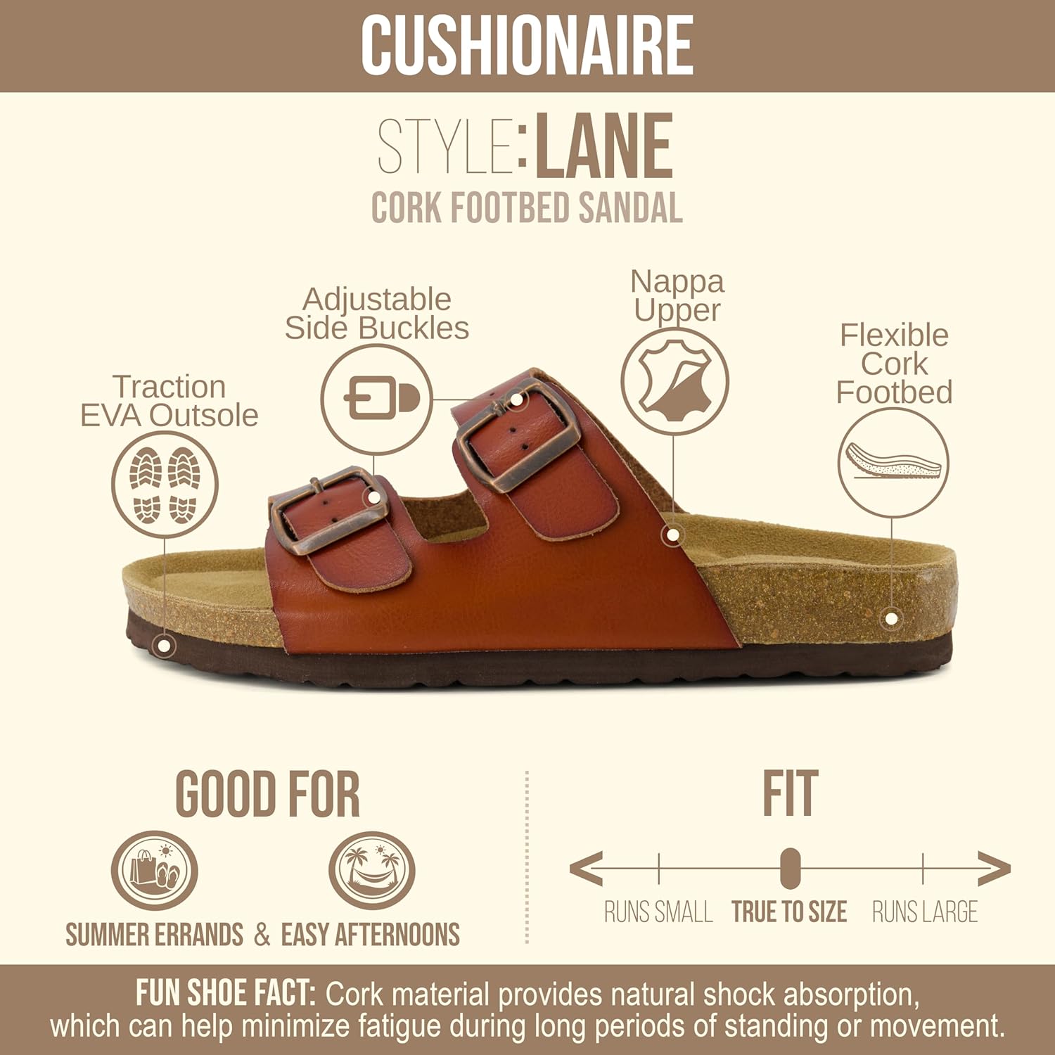 CUSHIONAIRE Lane Cork Footbed Sandals for Women u2013 Comfortable Double Buckle Slip-On with Genuine Suede Footbed & Arch Support Slides for Women Footwear