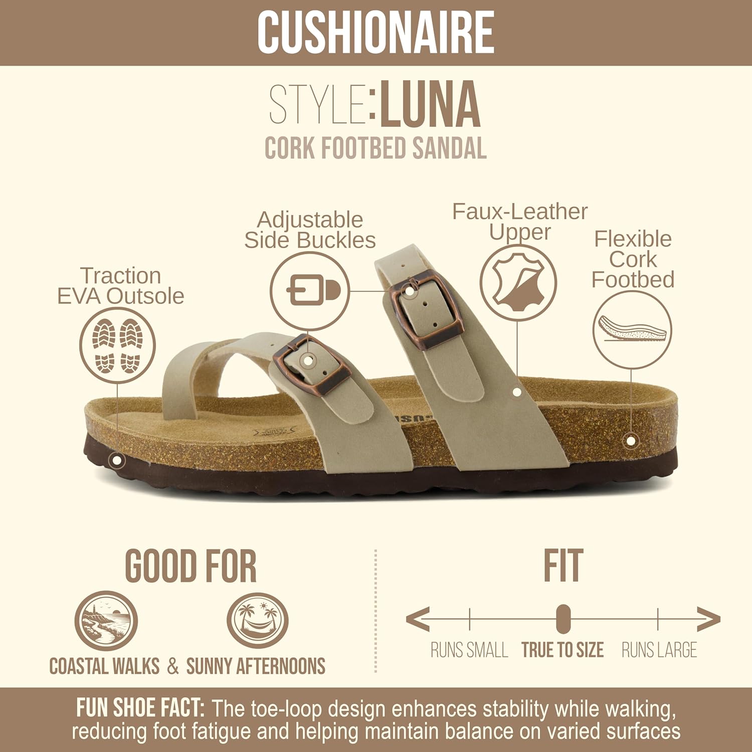 CUSHIONAIRE Women’s Luna Cork Footbed Sandal With +Comfort