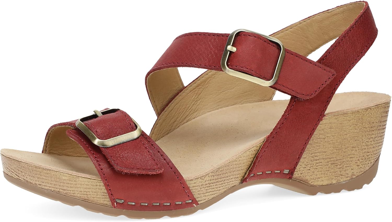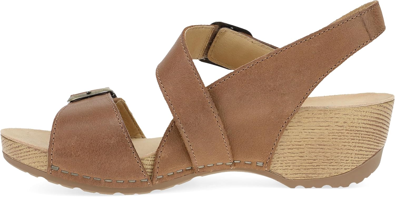 Dansko Trinity Wedge Sandal for Women u2013 Contoured Footbed for All-Day Comfort and Support u2013 Hook & Loop Strap with Buckle Detail u2013 Lightweight Rubber Outsole