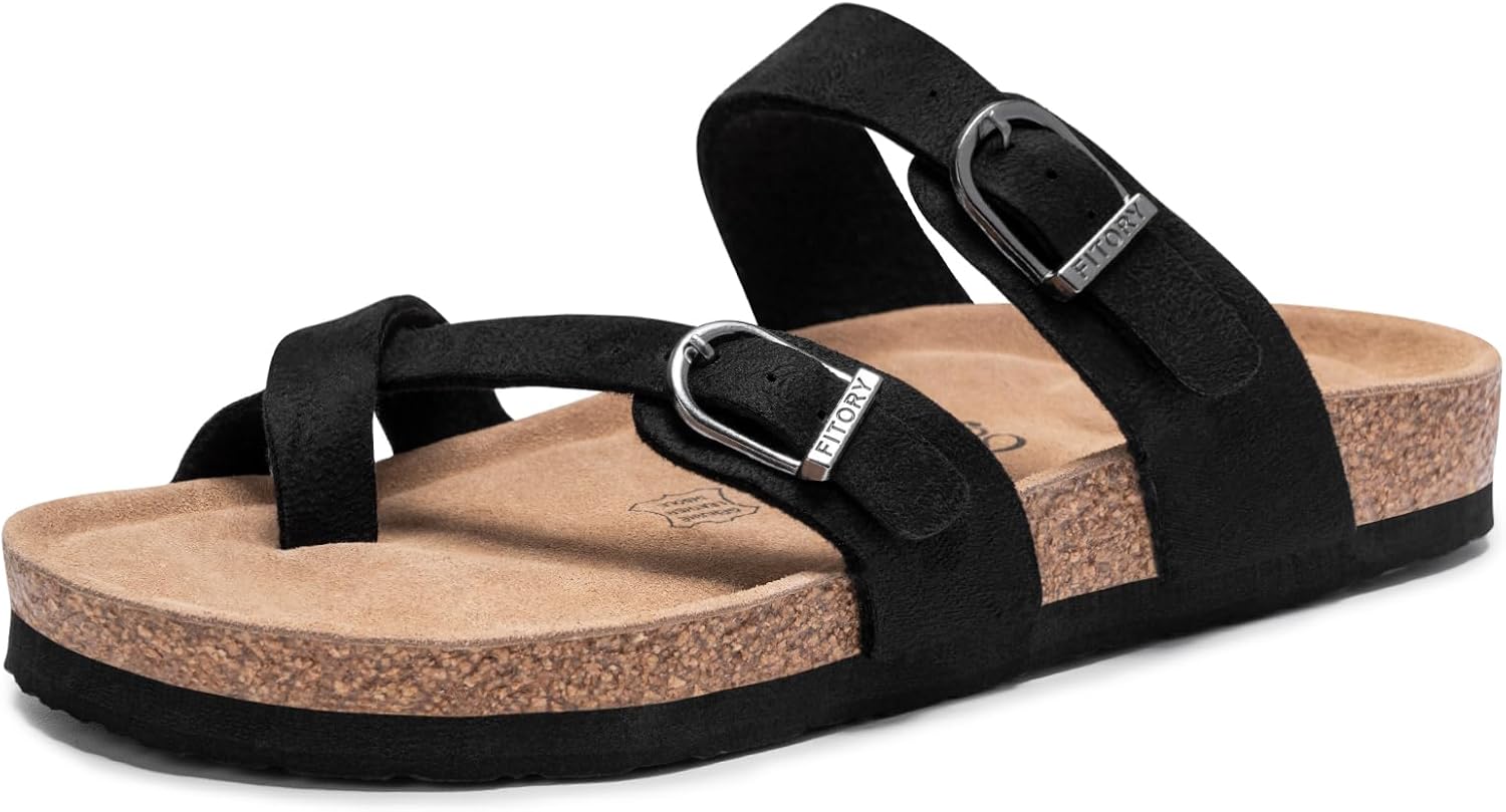 FITORY Women’s Slide Sandals with Soft Cork Footbed, Comfort Arch Support Flat Sandals for Summer Size 6-11