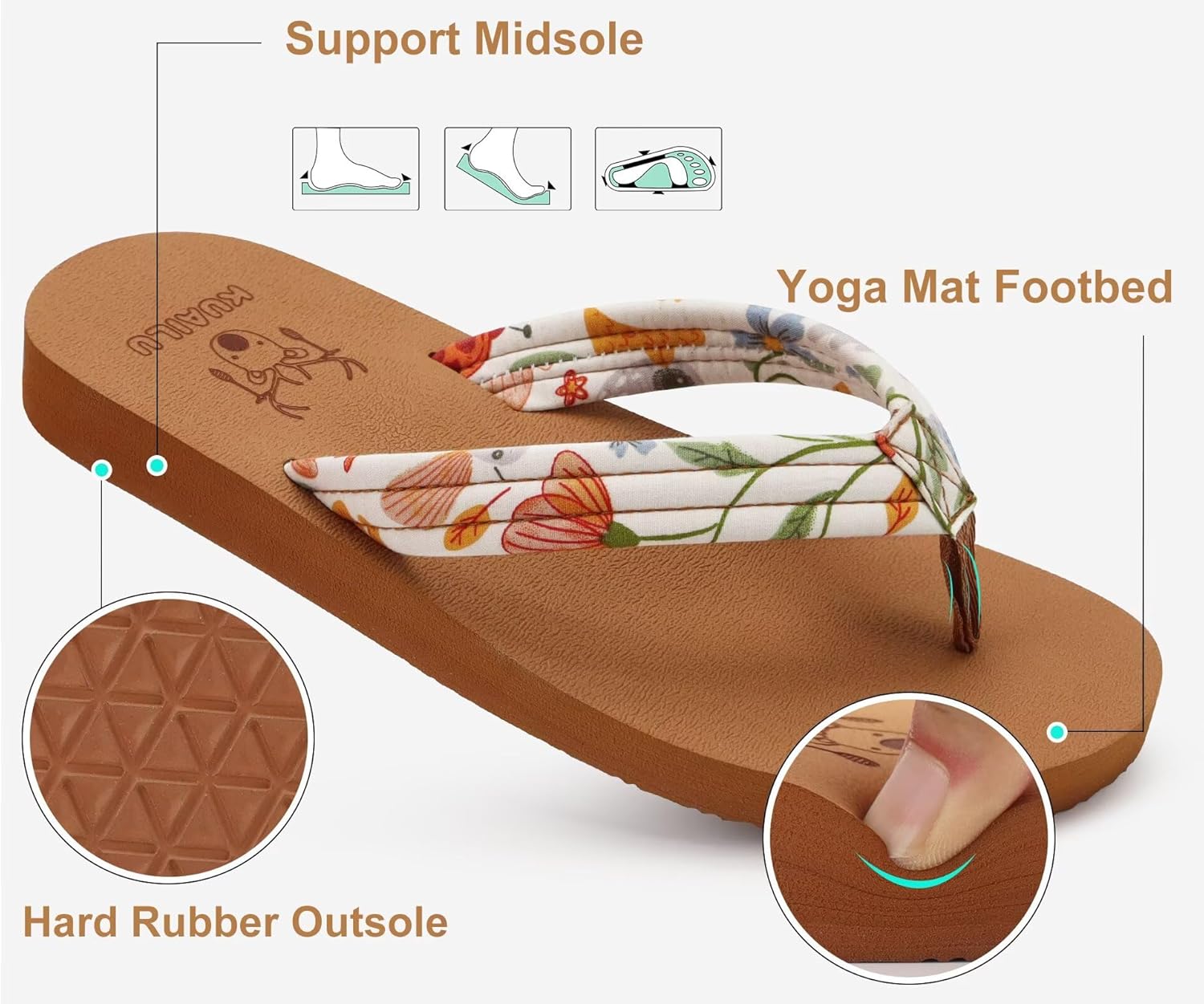 KuaiLu Womens Arch Support Flip Flops Ladies Comfort Lightweight Soft Yoga Mat Cushion Walking Thong Sandals