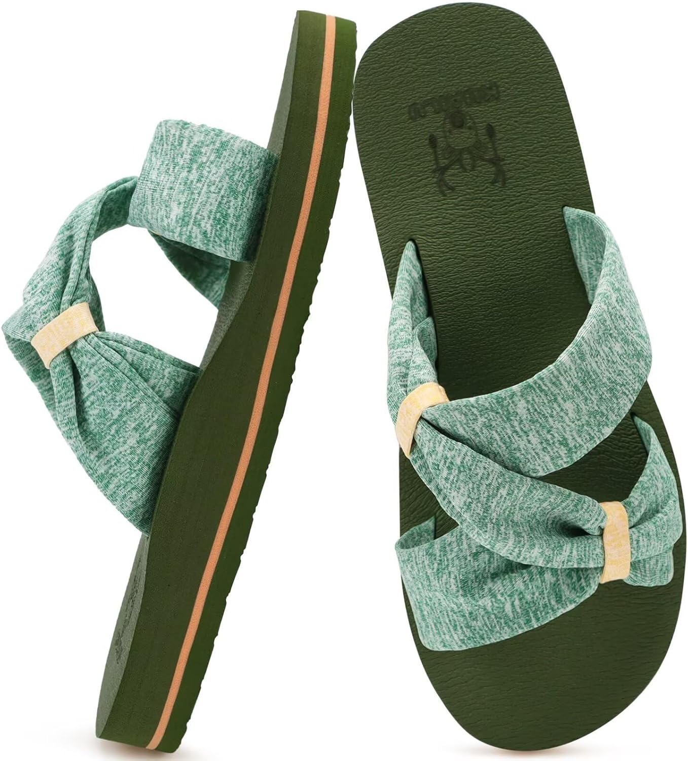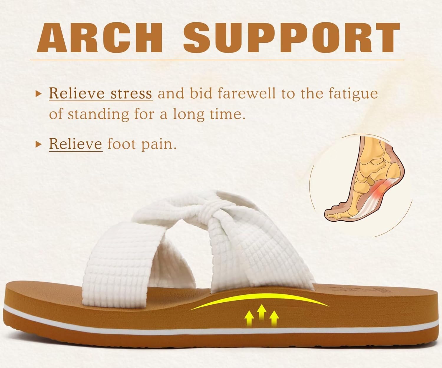 KuaiLu Womens Dressy Bow Sandals Arch Support Yoga Foam Cushion Comfortable Walking Slides Open Toe Summer Beach Indoor Outdoor Slippers