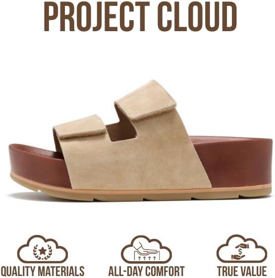 Project Cloud 100% Genuine Leather Platform Sandals Women Footwear-Beach Essentials Summer Wedges with Plush and Soft Insole-Non Slip & Lightweight Wedge Sandals For Women 2026