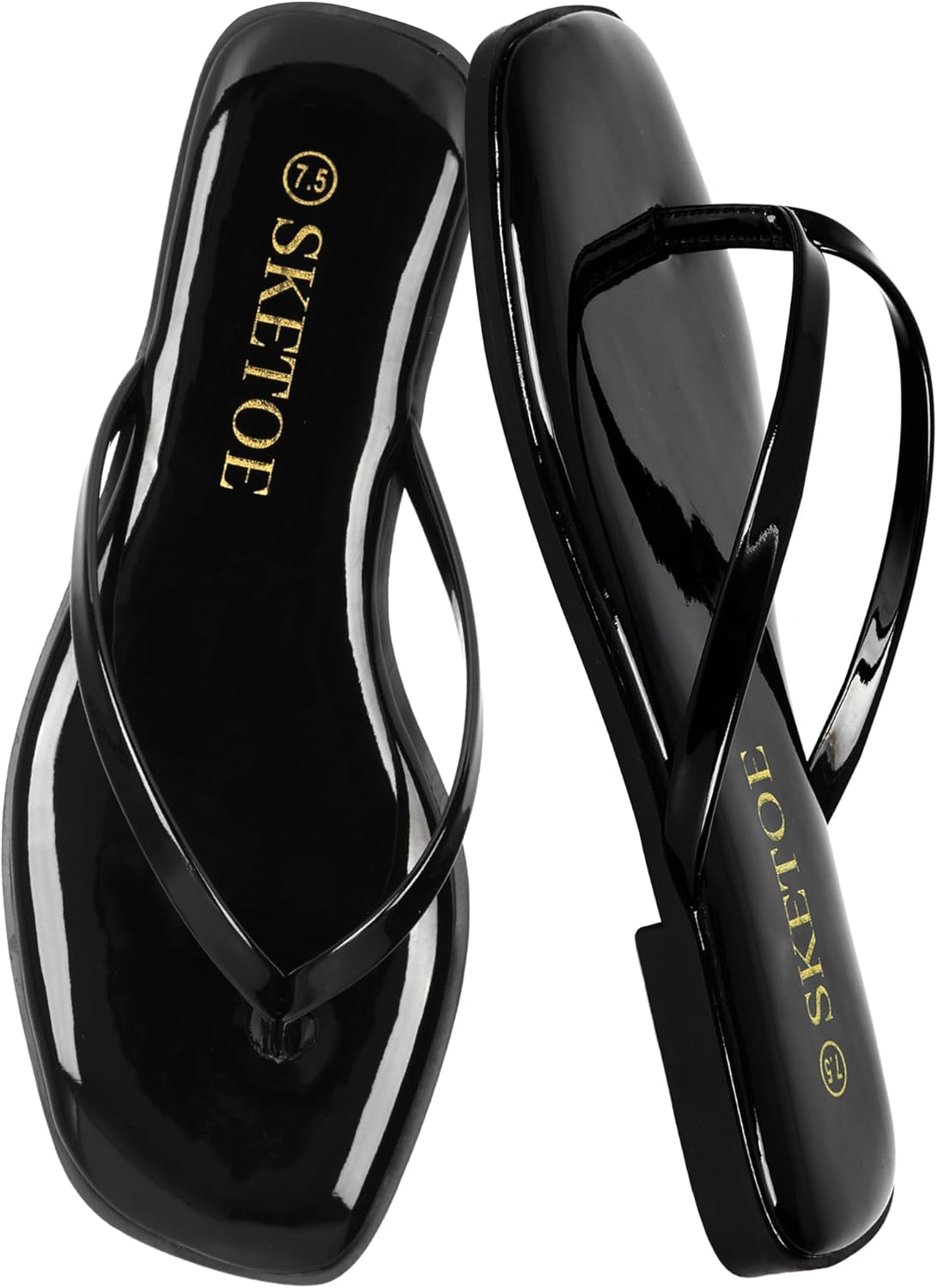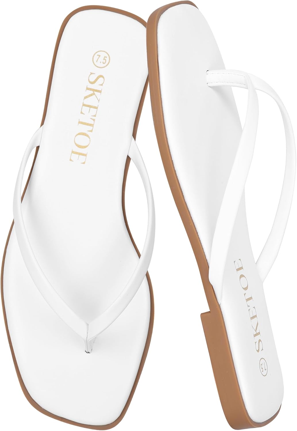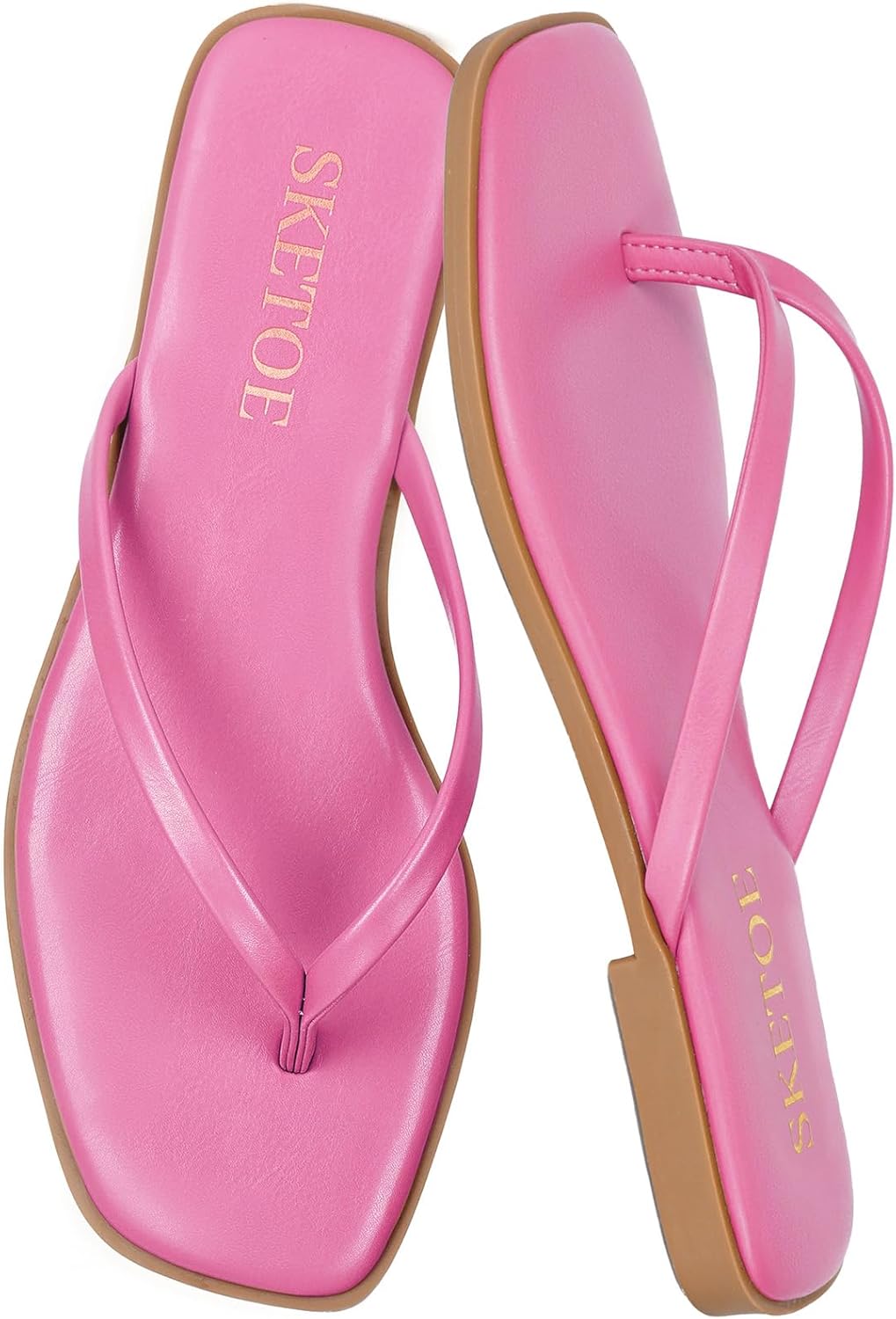 SKETOE Flip Flops for Women Square Toe Flat Sandals for Women Comfortable Thong Sandals Vegan Leather Flip Flops Lightweight Summer Beach Sandals Dressy Vacation Essentials Slides