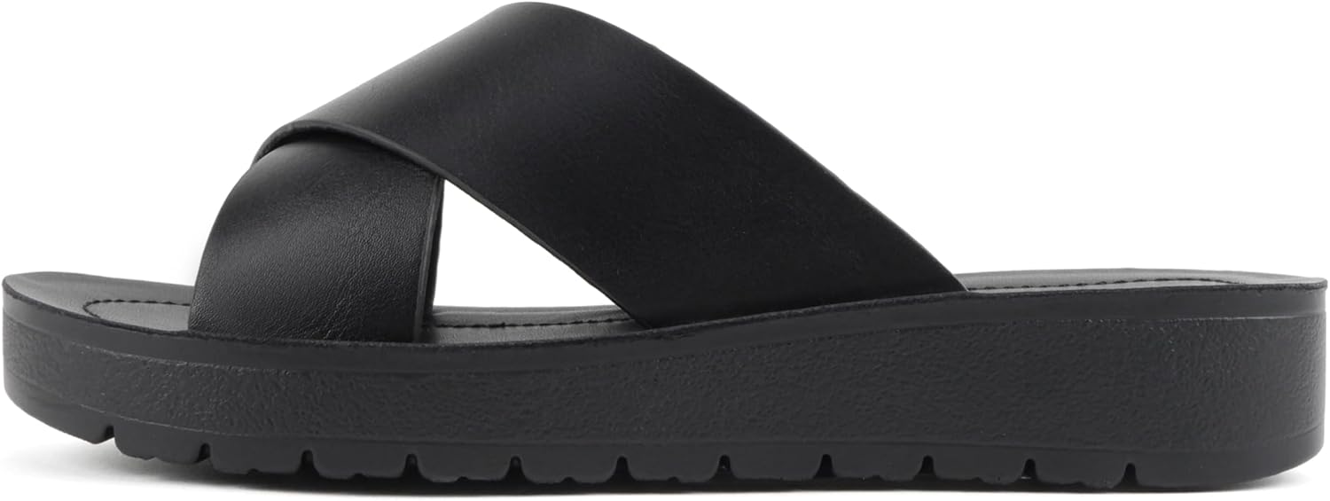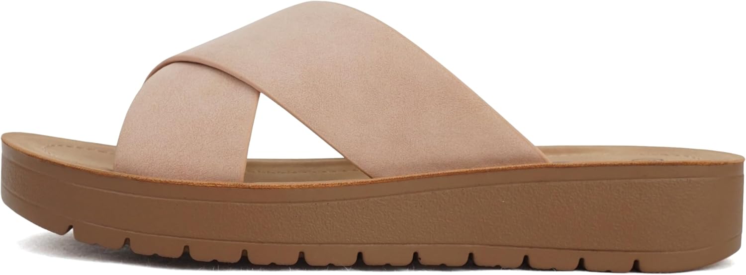 Soda LUCY ~ Women Open Toe Flatform Platform Crisscross Band Upper Fashion Slide Sandals
