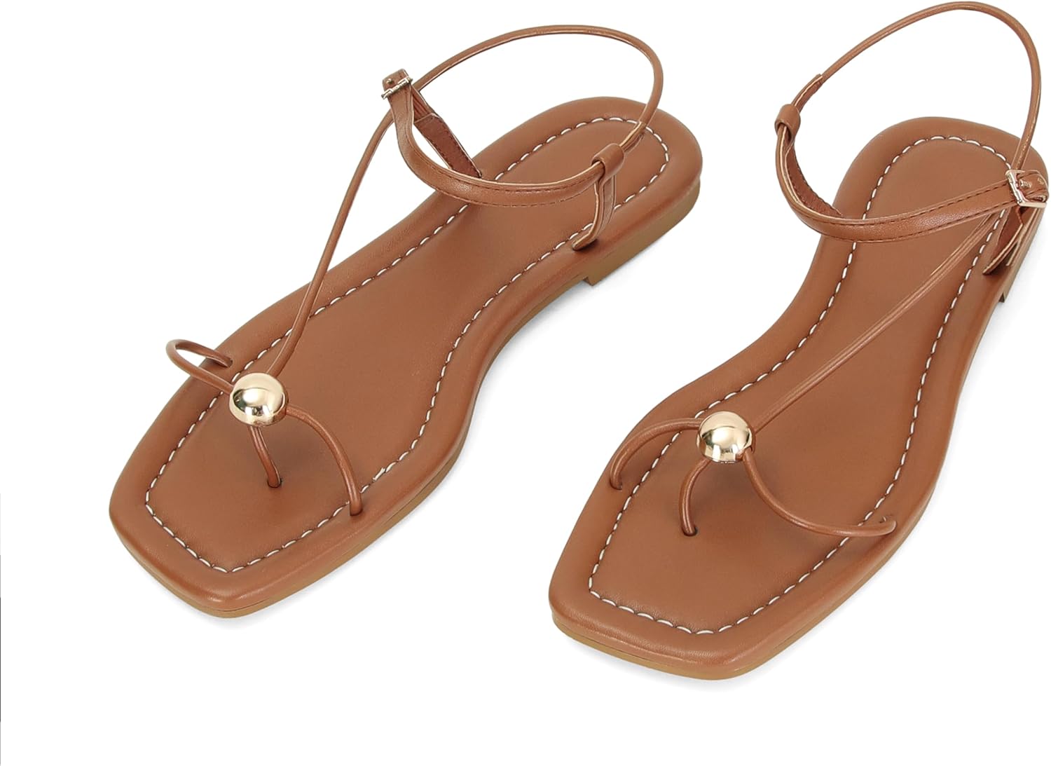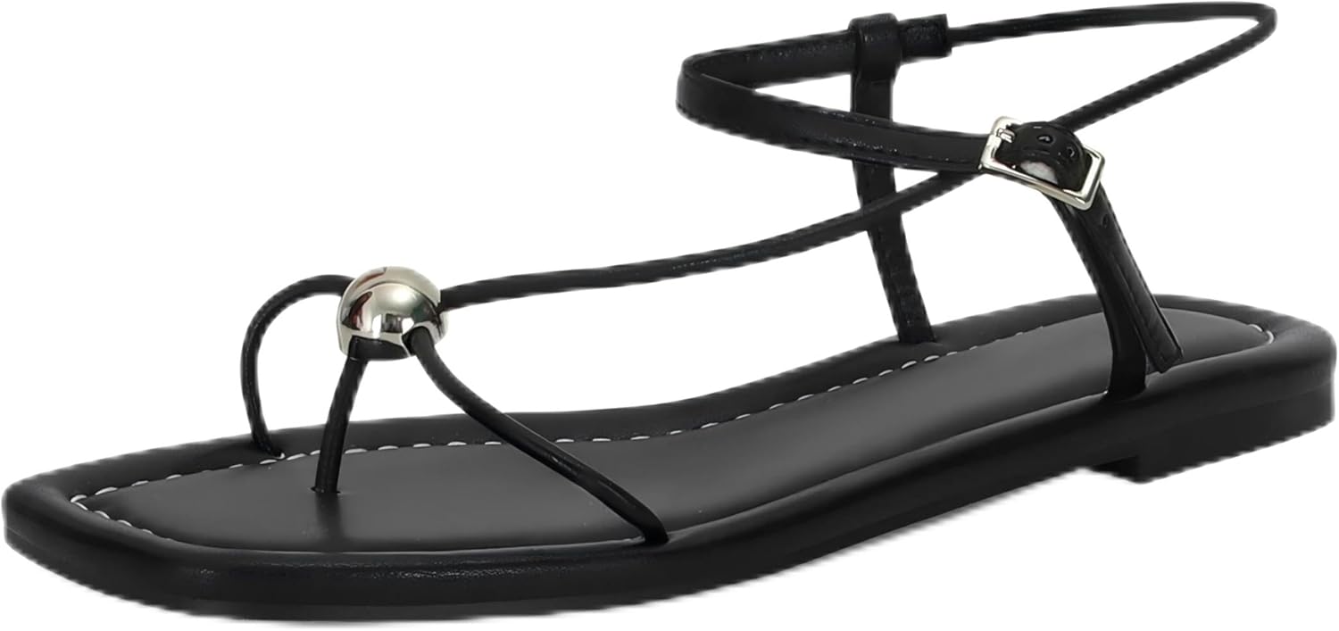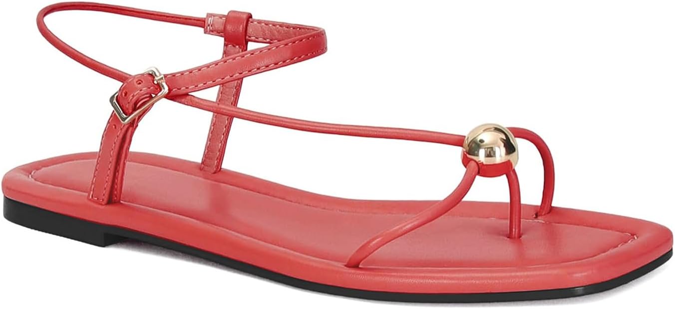 XBKXMK Strappy Flat Sandals for Women Comfortable Dressy Summer Beach Thong Flip Flop Slide Sandals with Gold Hardware